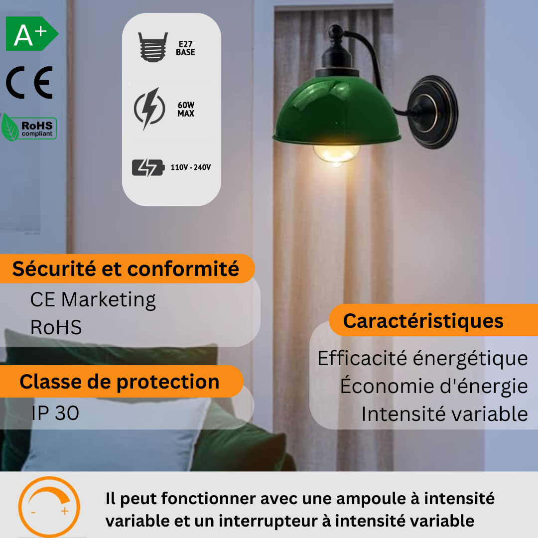 • Ces appliques murales modernes combinent un charme vintage industriel avec un design contemporain.