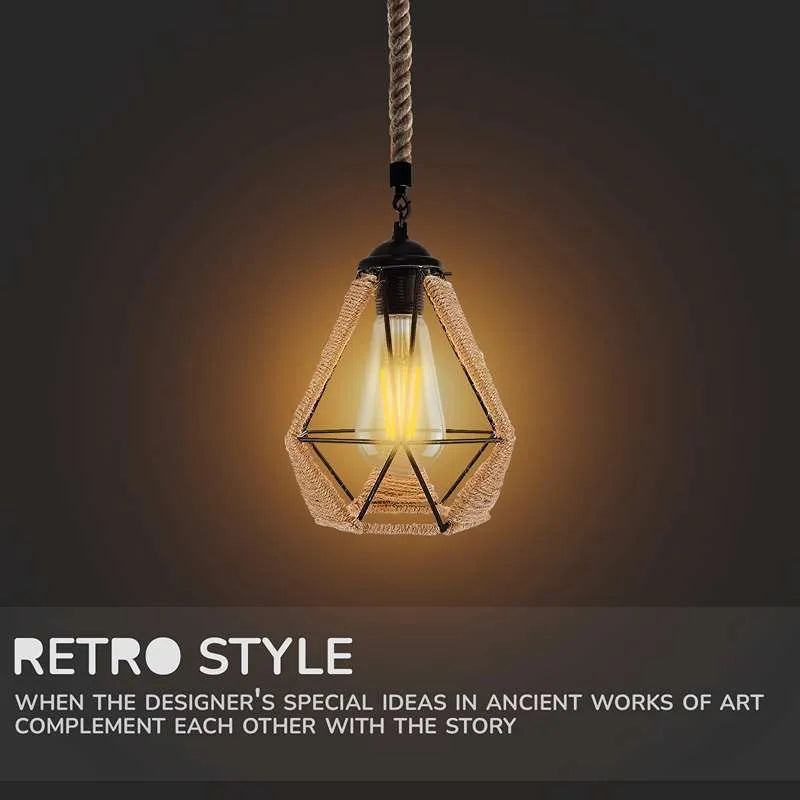 Suspension industrielle loft rétro vintage corde chanvre ~1548
