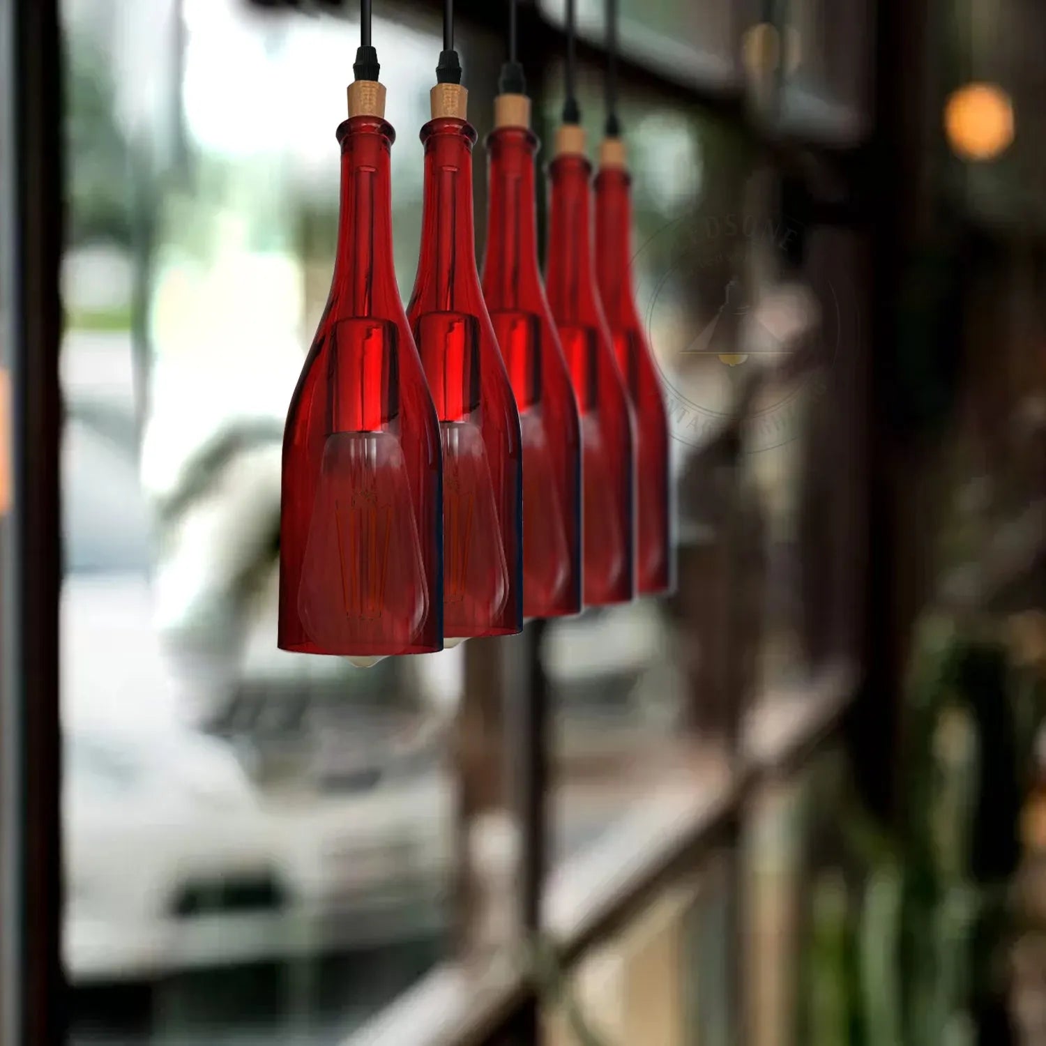 Suspension classique grappe avec abat-jour en verre bouteille de vin ~1529