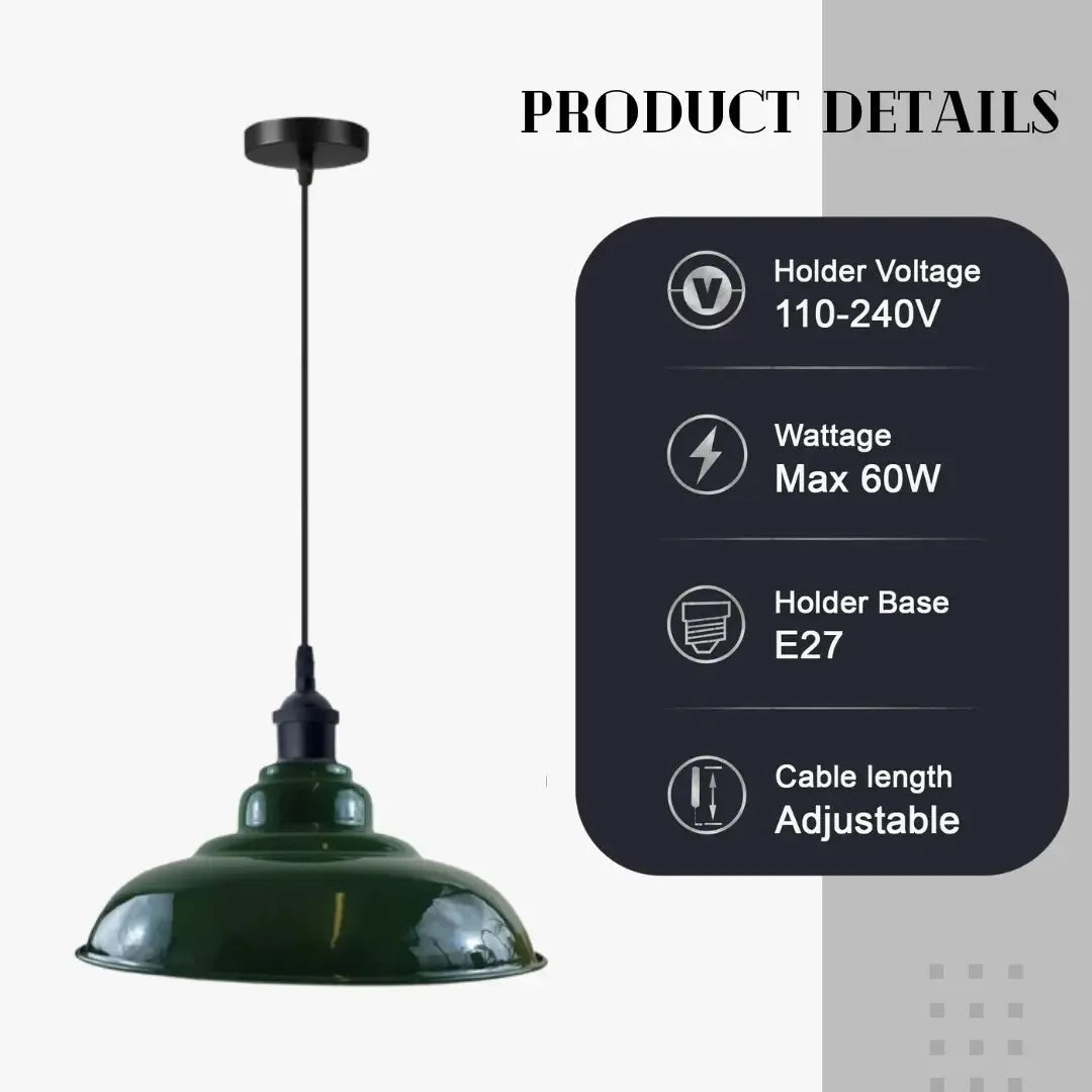 LEDSone industriel Vintage 32 cm vert pendentif rétro abat-jour en métal support E27