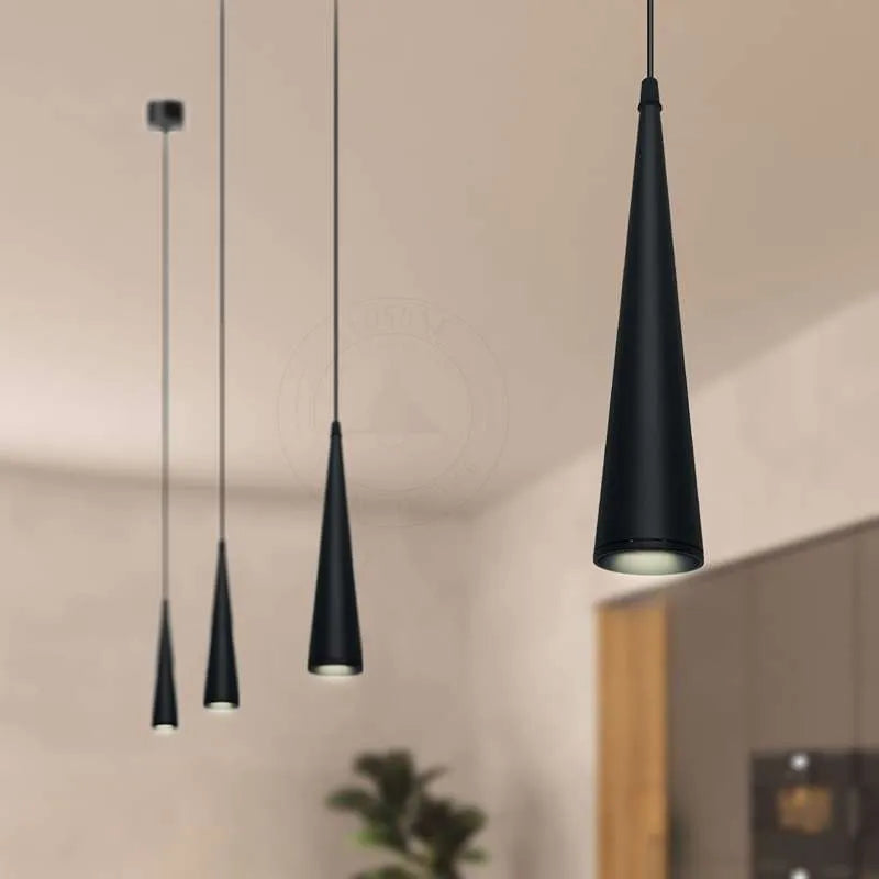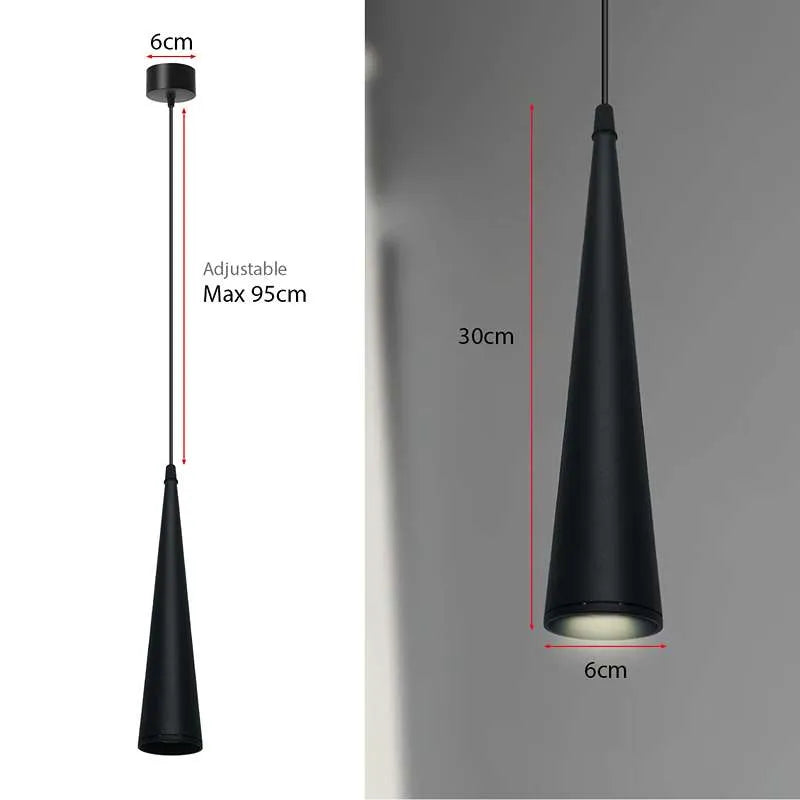 Suspension Luminaire Noir GU10 Long Cône Tube ~1518