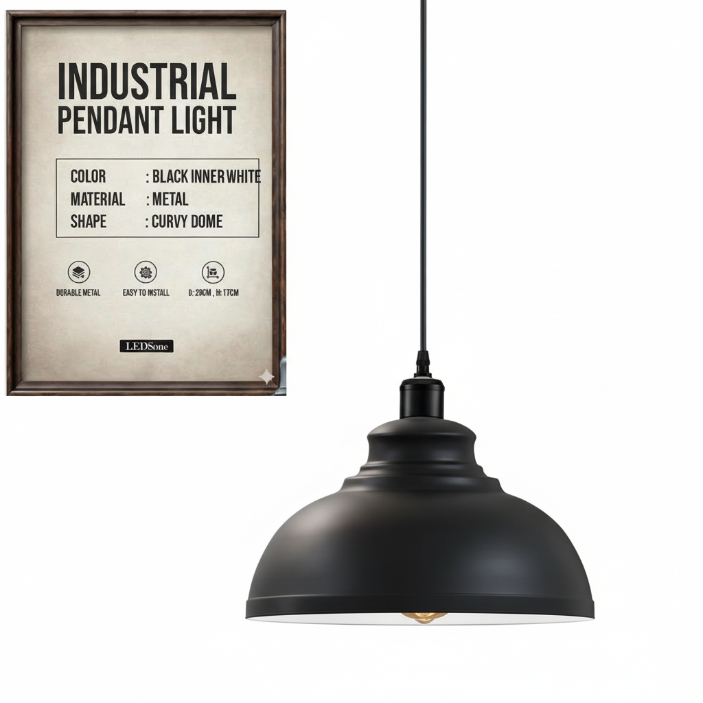 LEDSone Suspension Industrielle Vintage – Lustre Rétro Métal Plafonnier ~1544