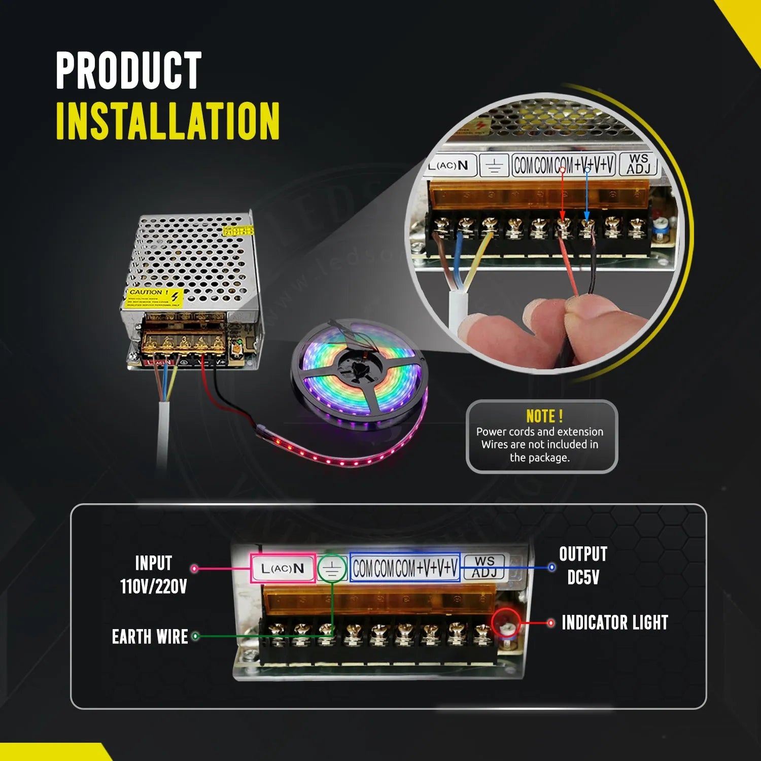 Alimentation à Découpage 5V 100W 20A – Transformateur LED Régulé en Aluminium ~1812