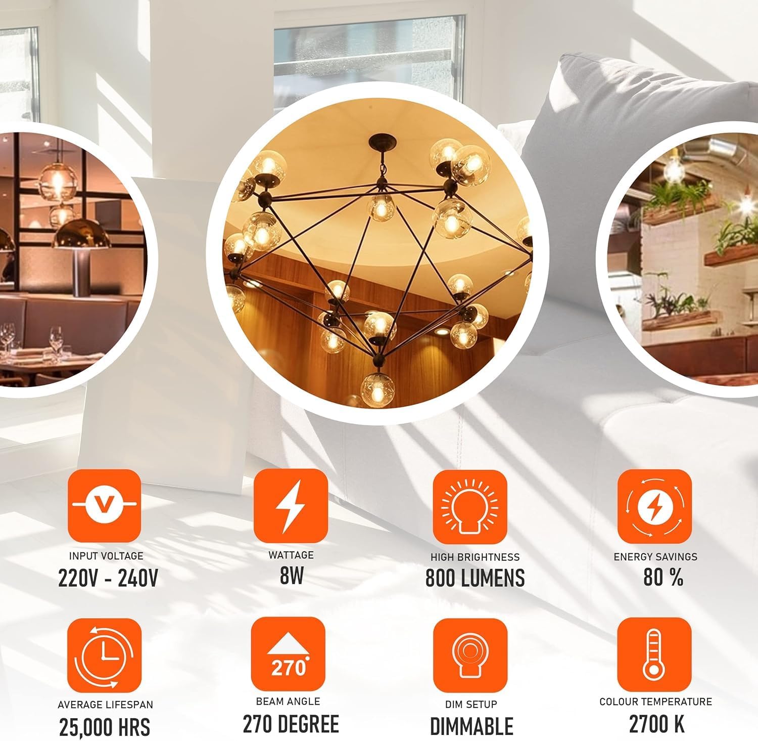 Ampoule LED Edison G95 E27 8W Dimmable – Verre Ambré Vintage 2700K ~ 3249