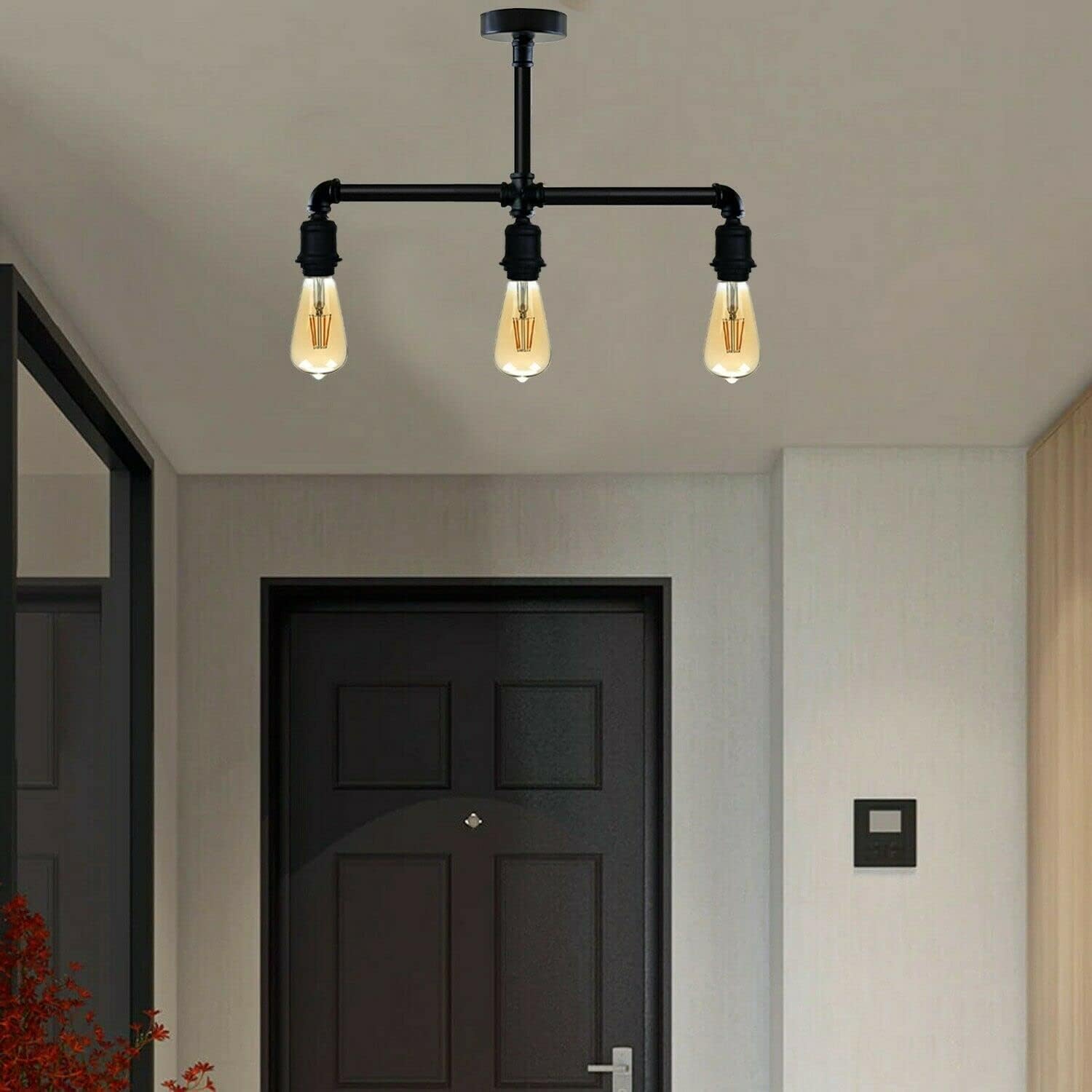 Suspension Plafond Industrielle 3 Lumières – Luminaire Tuyau Steampunk pour Cuisine & Loft~1806