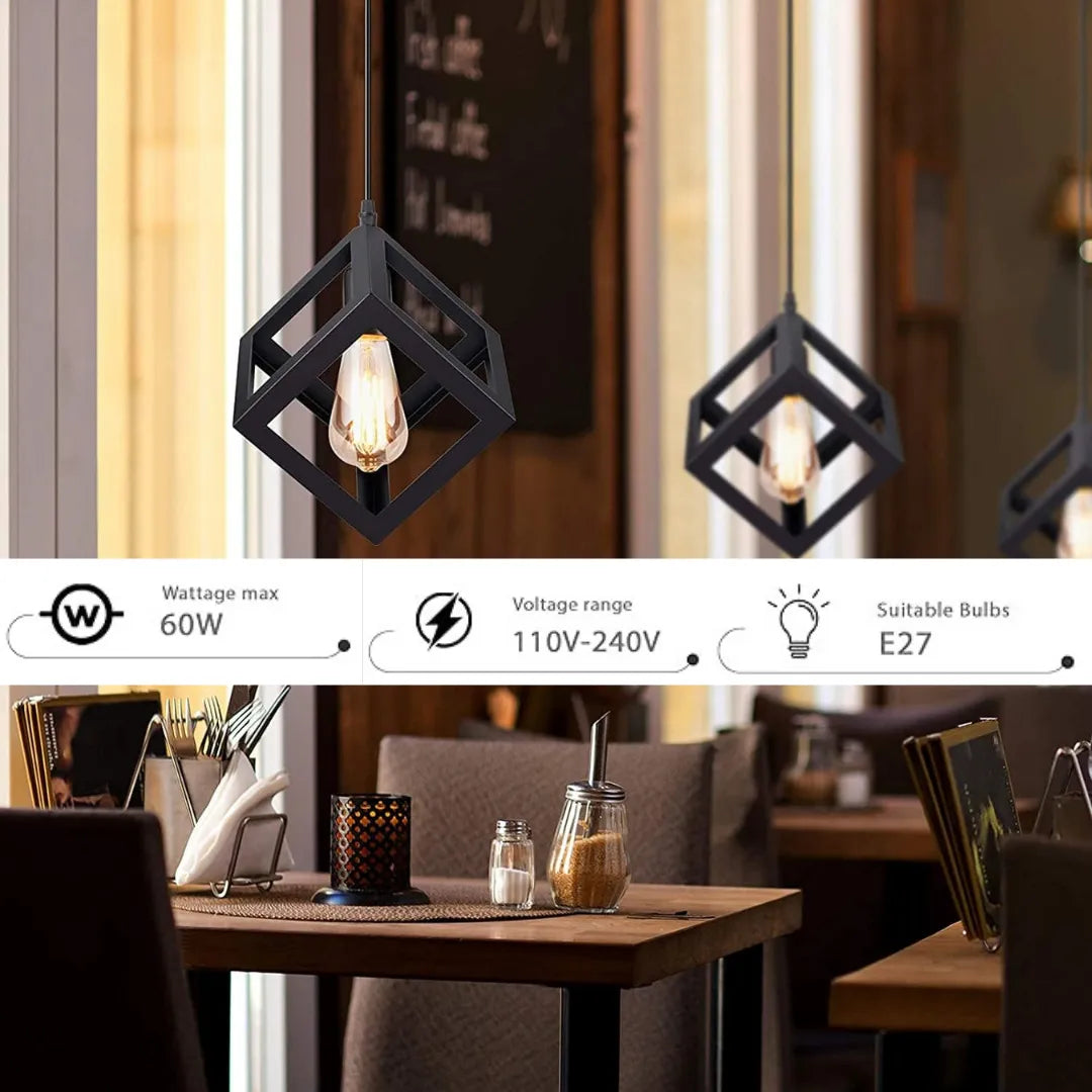 Pendentif cage métallique carré noir industriel | Éclairage de cuisine moderne ~1764