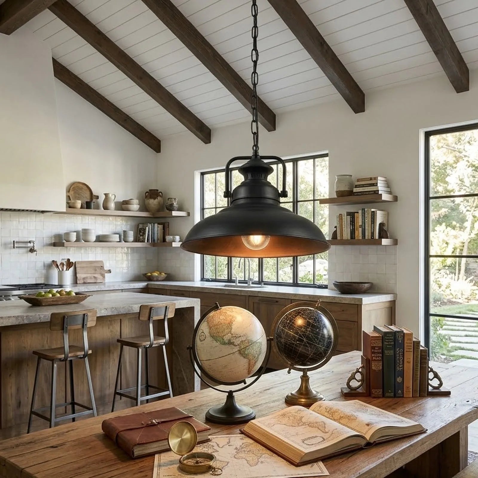Luminosité maximale avec une flexibilité totale : Cette élégante suspension résout le problème des conditions d'éclairage difficiles. Grâce à l'articulation réglable sur le socle et le capot, c'est la solution idéale pour les toits en pente sur les îlots de cuisine ou les bars.