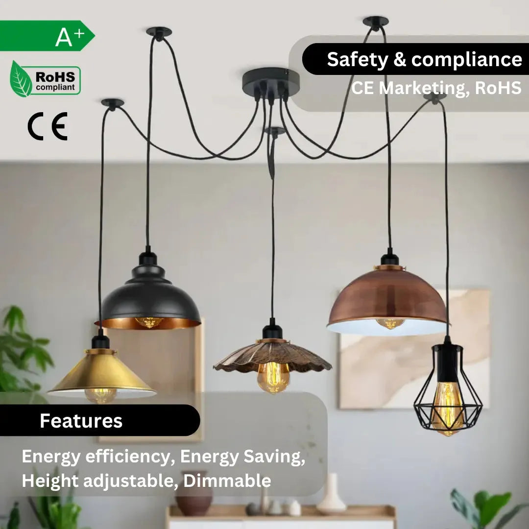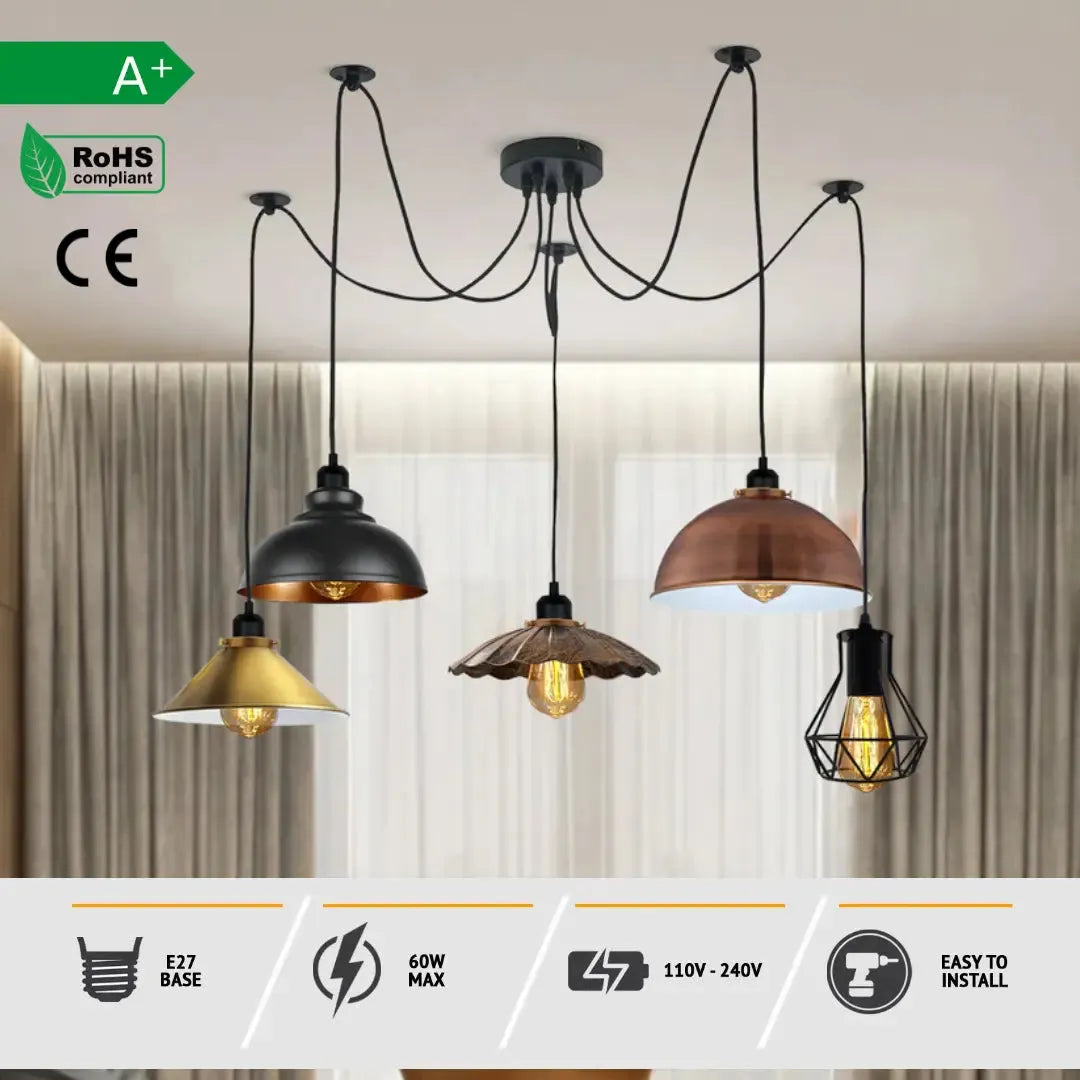 Plafonnier araignée 5 voies industriel rétro vintage ~1519