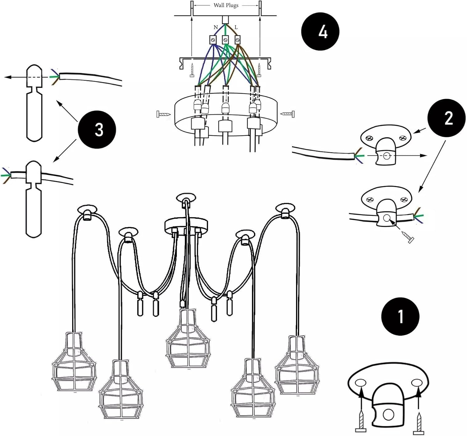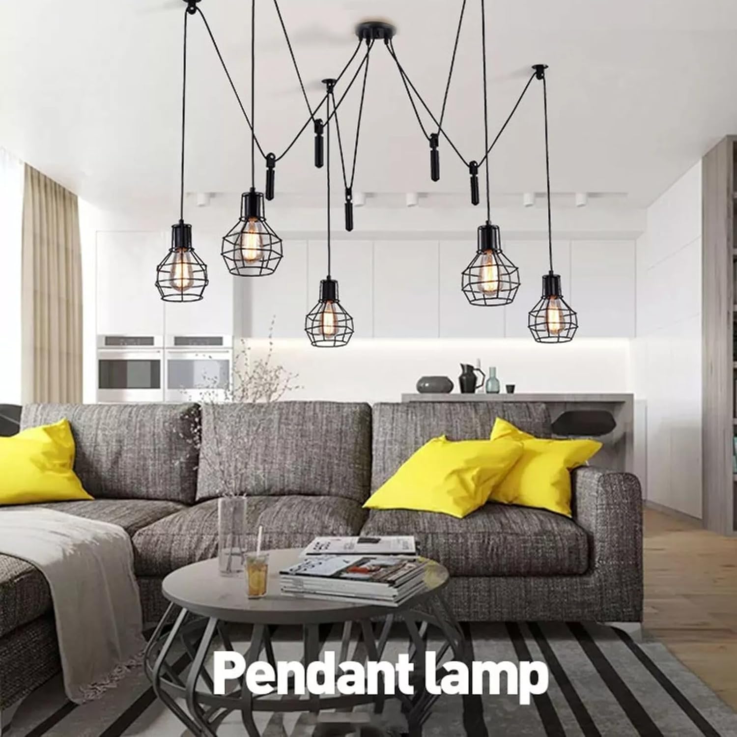 Lustre Araignée 5 Têtes - Suspension Industrielle Métal Noir ~ 2488