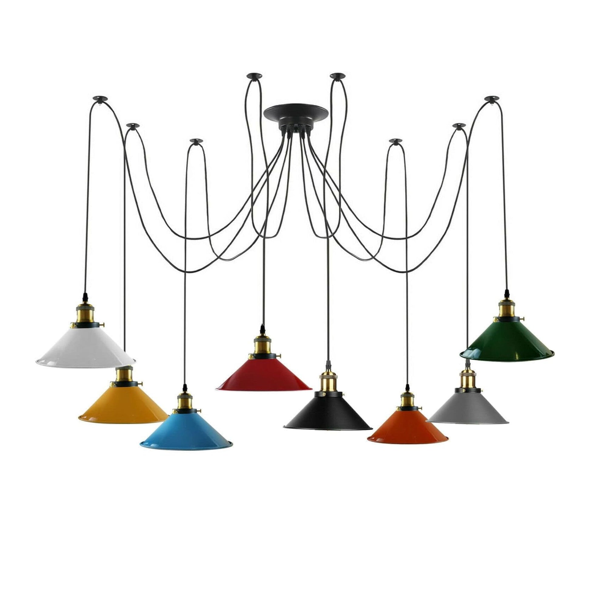 Suspension Araignée 8 Ampoules Fils 2m E27 avec abat jour ~1539