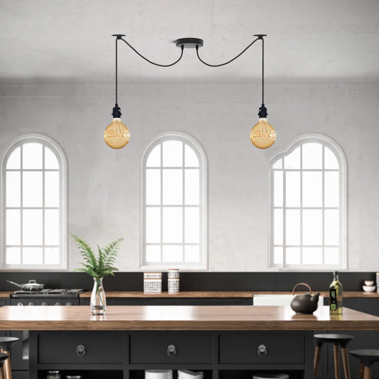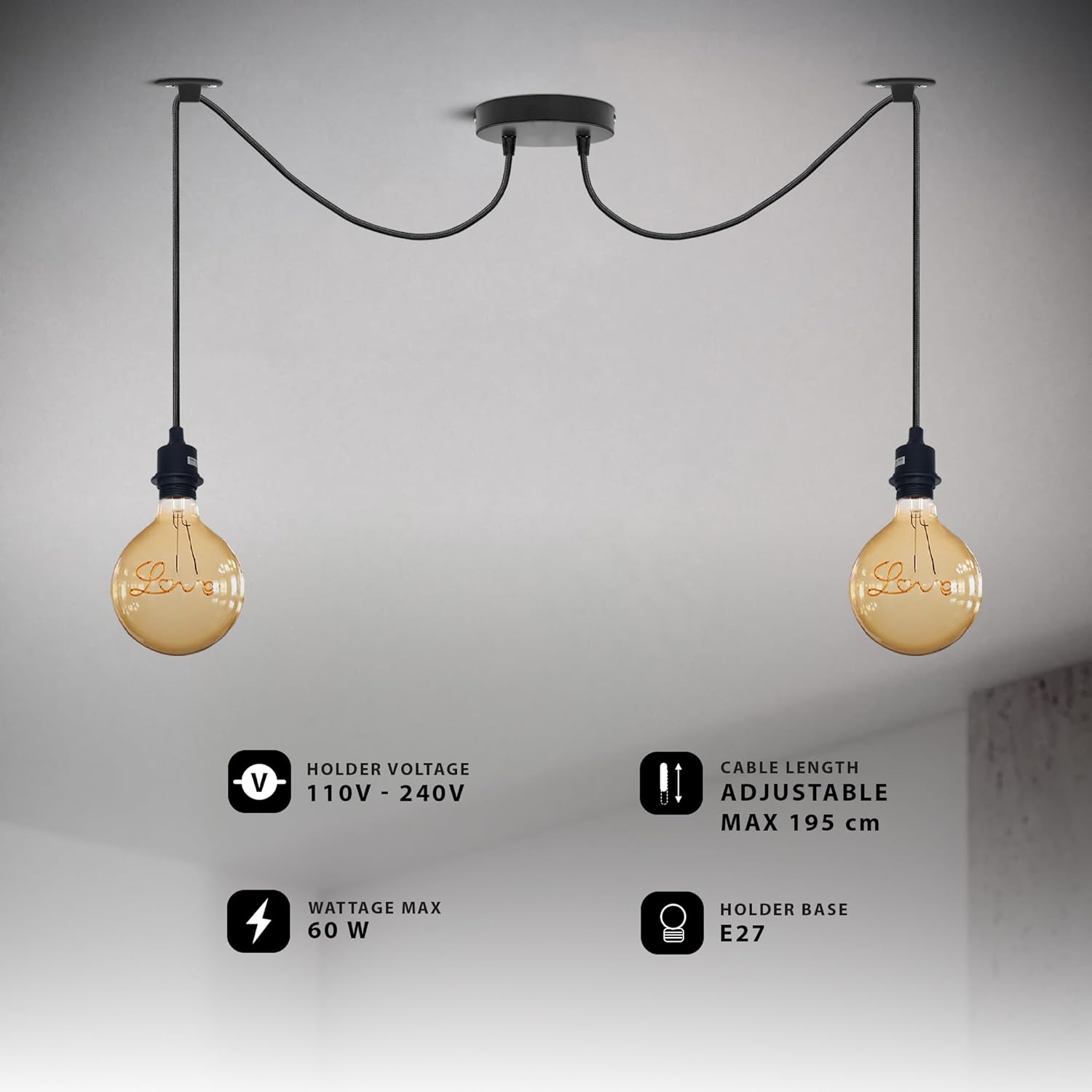 Suspension lustre suspension lampe suspension plafonnier industriel 2 têtes ~1687