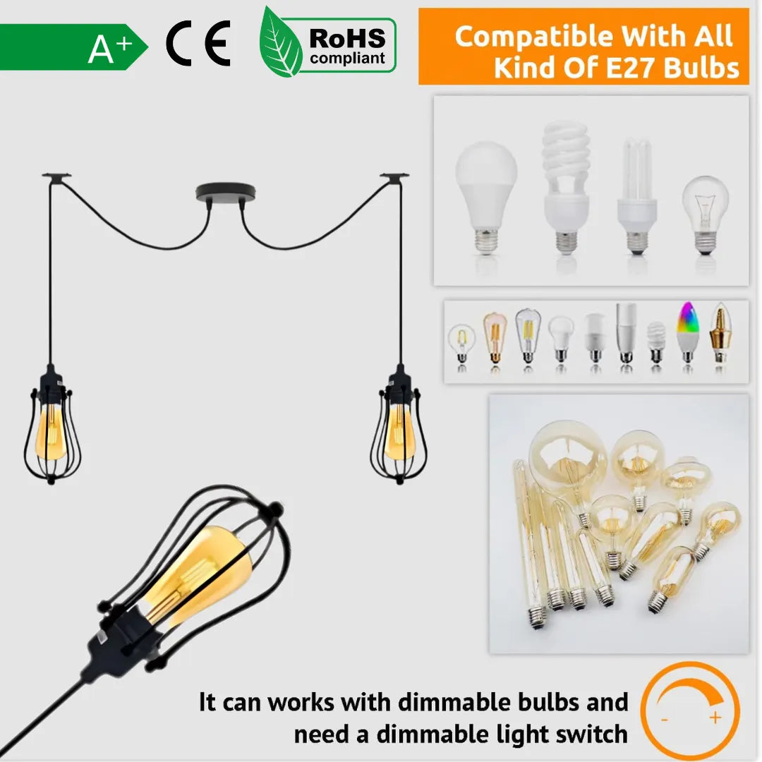 Suspension plafonnier cage tête 1/2/6 Swag araignée ~1565