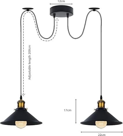 Suspension Plafonnier Industriel Rétro en Laiton Jaune - 2 Têtes E27 ~1626