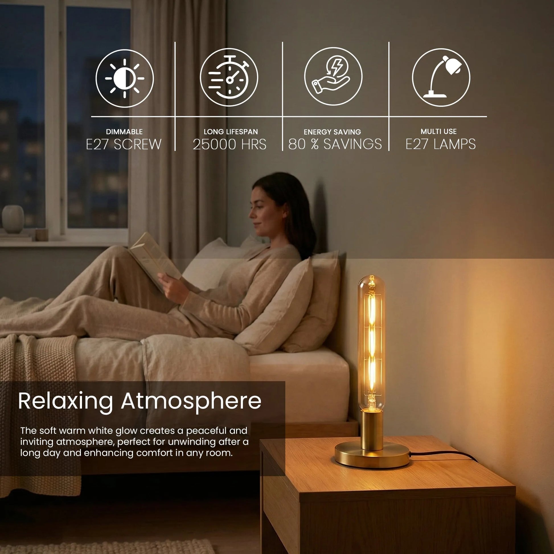 Ampoule LED tubulaire vintage T185 Filament dimmable E27 Ambre chaud ~1932